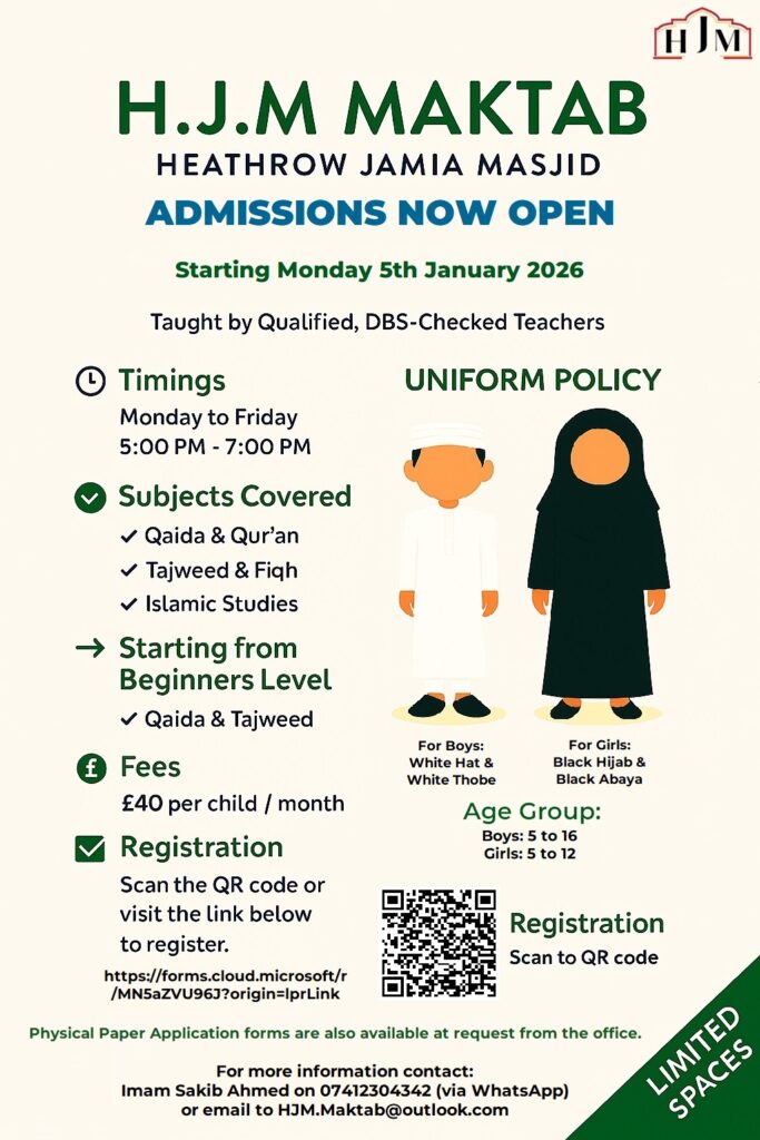 Open Daily: Fajr To Sunrise & 12:00PM To Isha